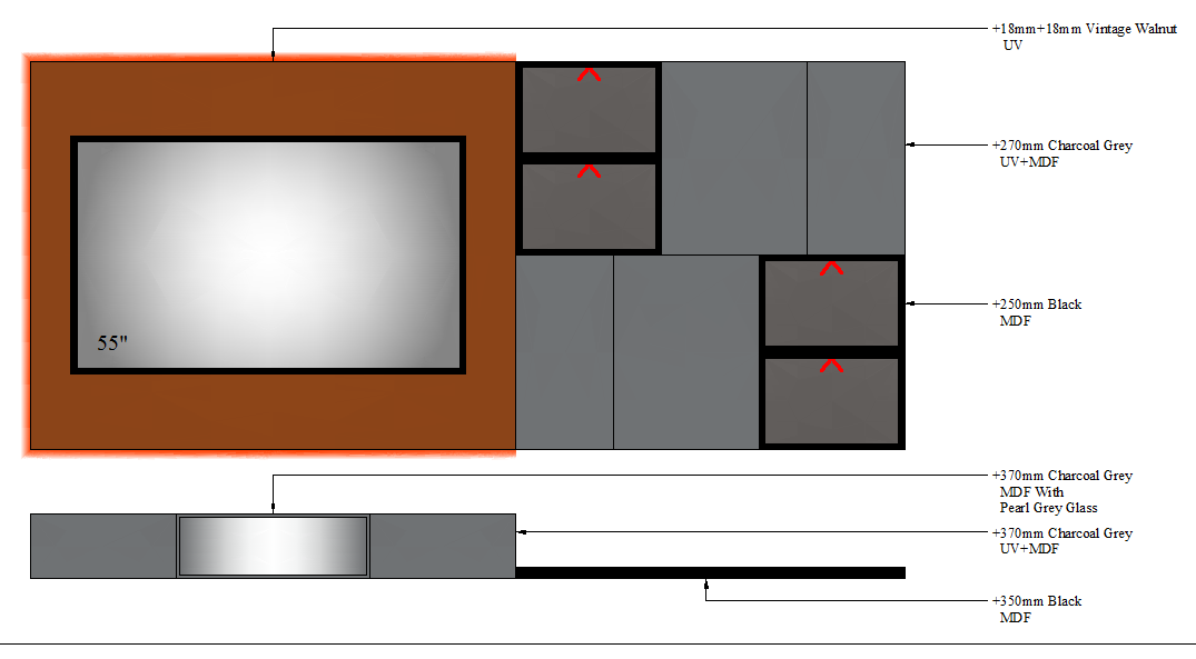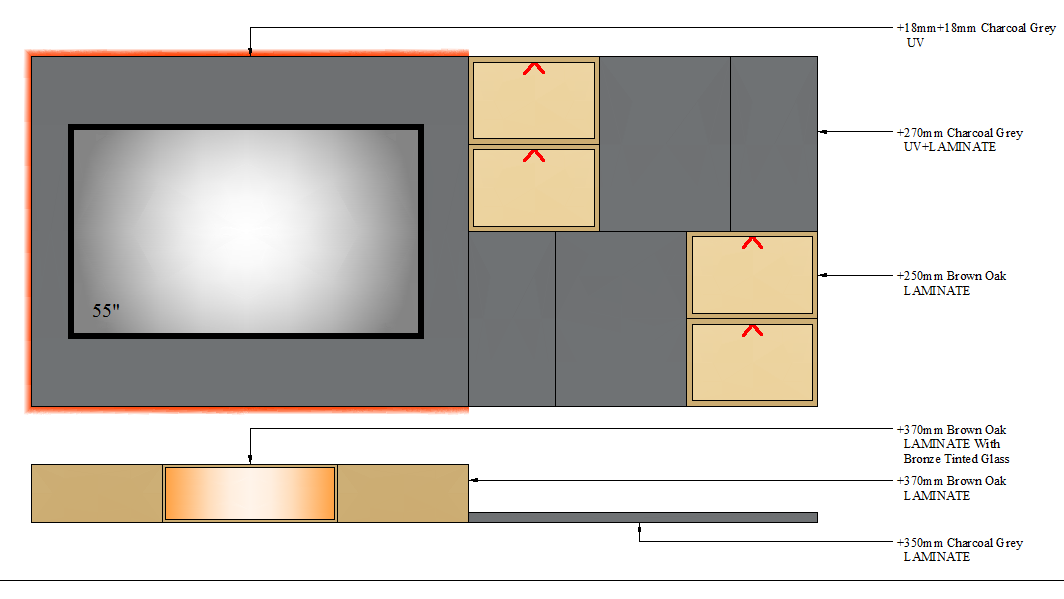 TV UNIT-3 GLASS - 2700mm
