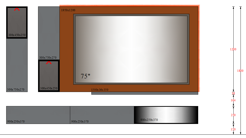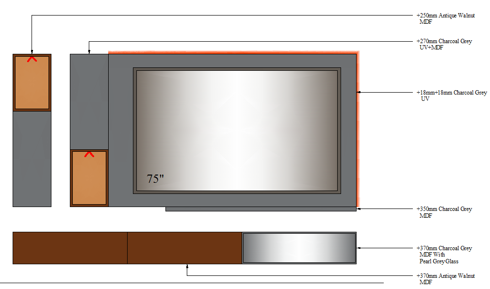 TV UNIT-4 GLASS - 2700mm