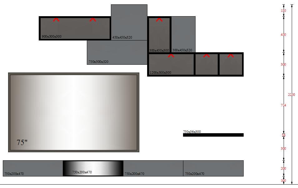 TV UNIT-8 GLASS - 3000mm