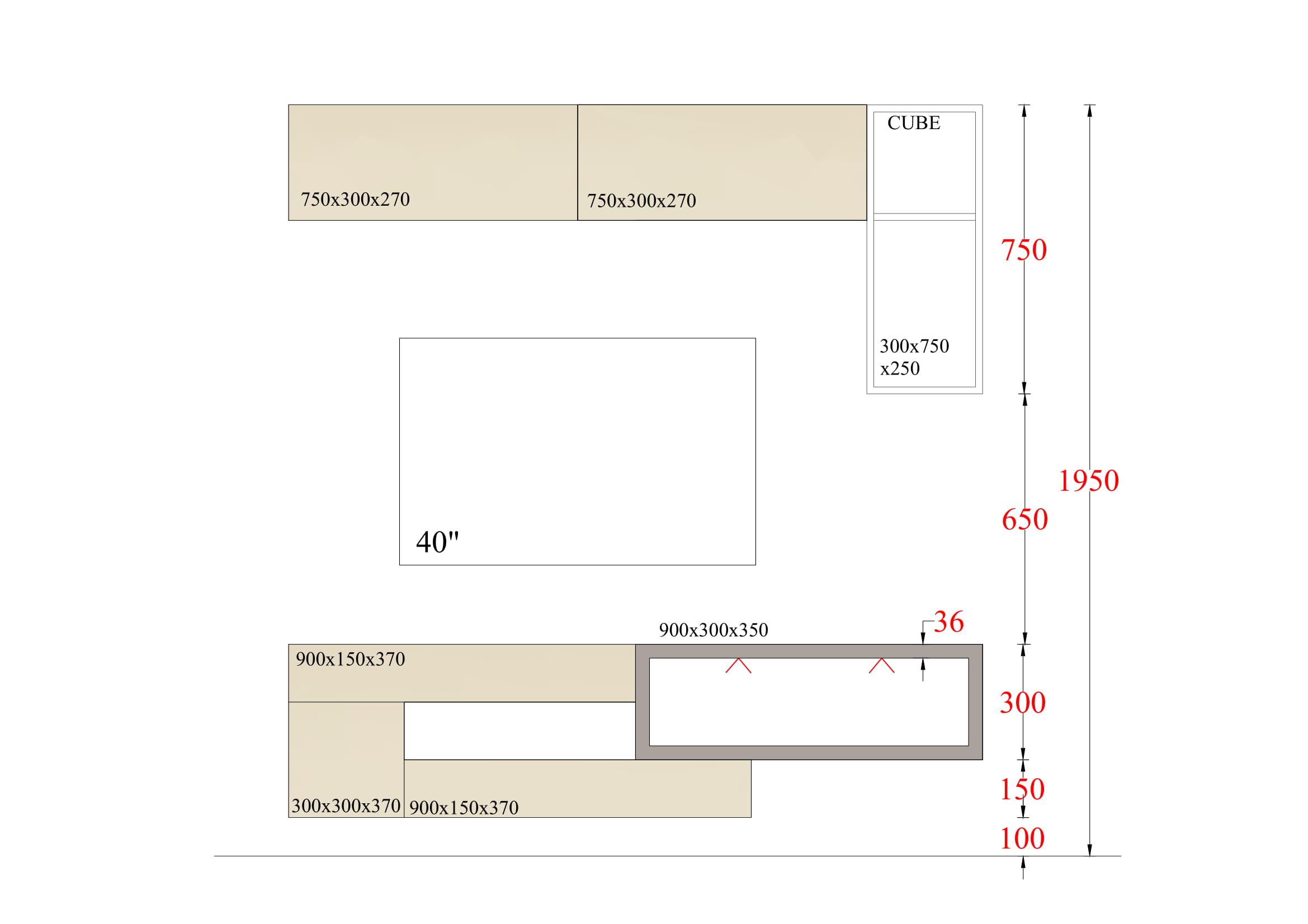 TV UNIT WITH CUBE- 14 - 1800mm