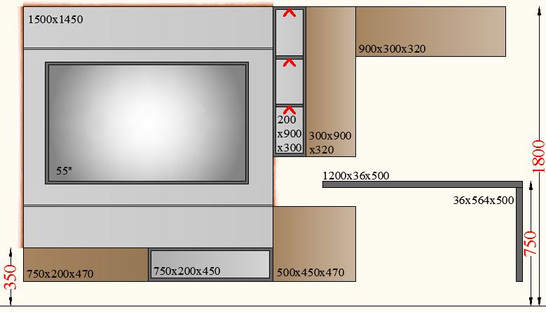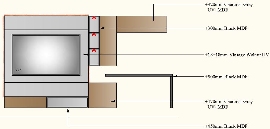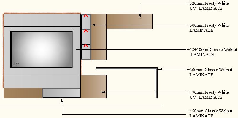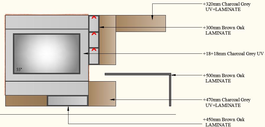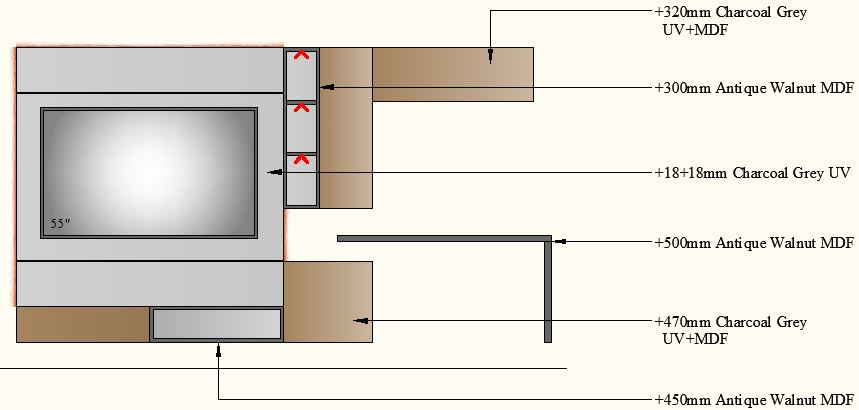 TV Unit with Study-3000-3 - 3000mm