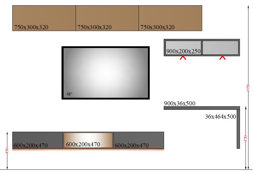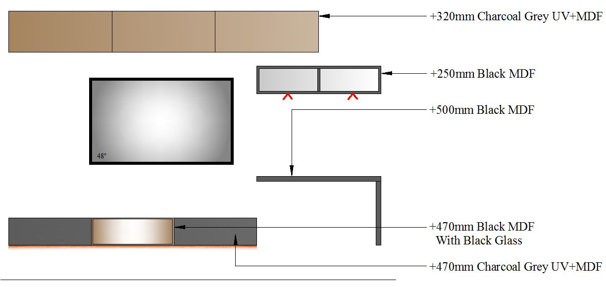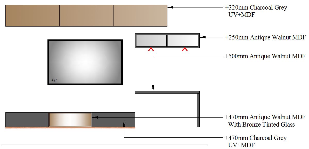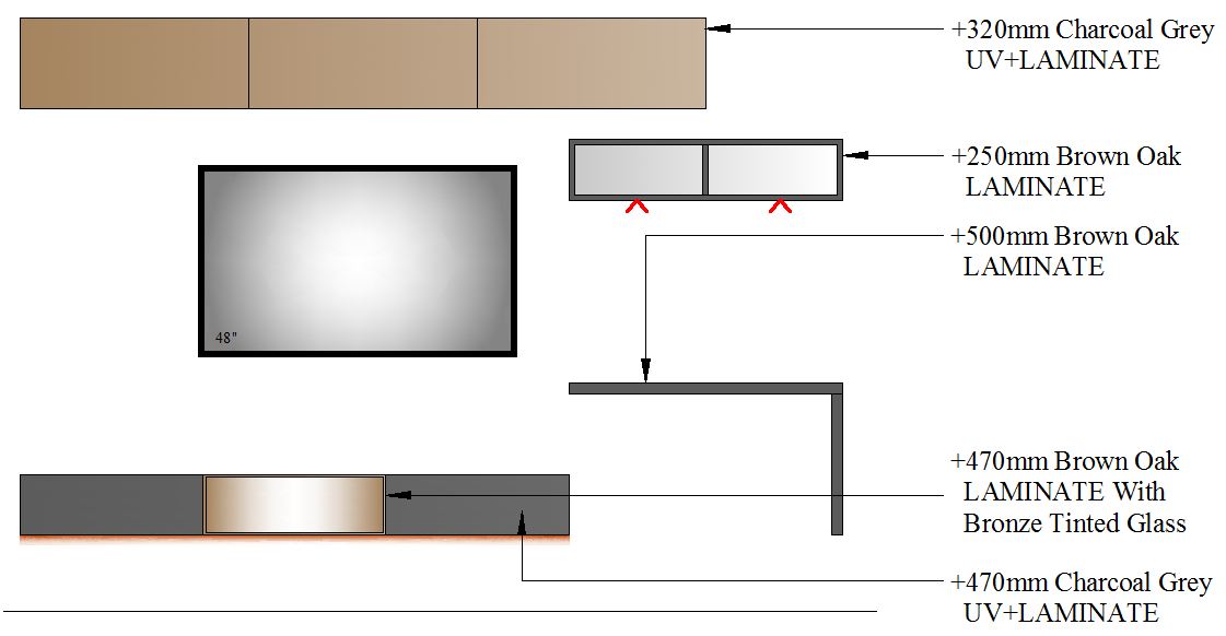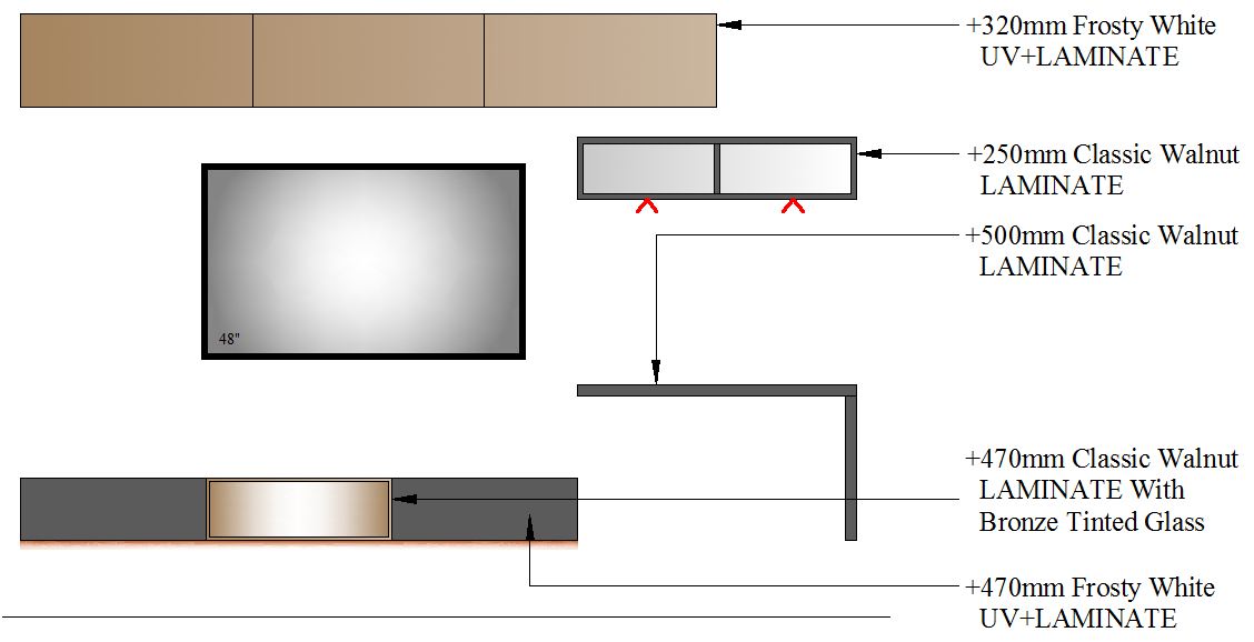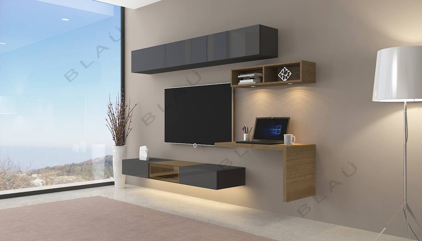 TV Unit with Study-2700-2 GLASS - 2700mm